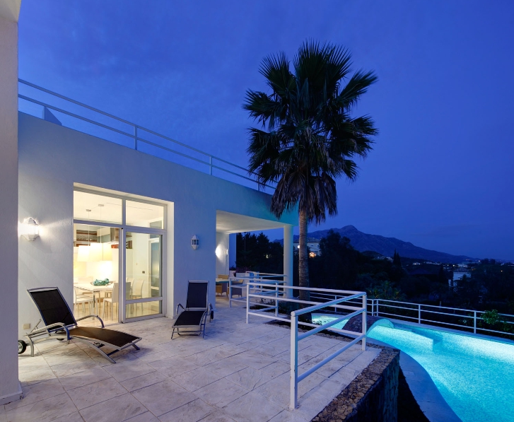 This unique contemporary style villa located on the hills overlooking the La Concha Mountain, Golf Valley, Puerto Banus, the Mediterranean and African coastline.