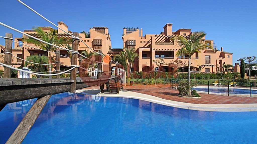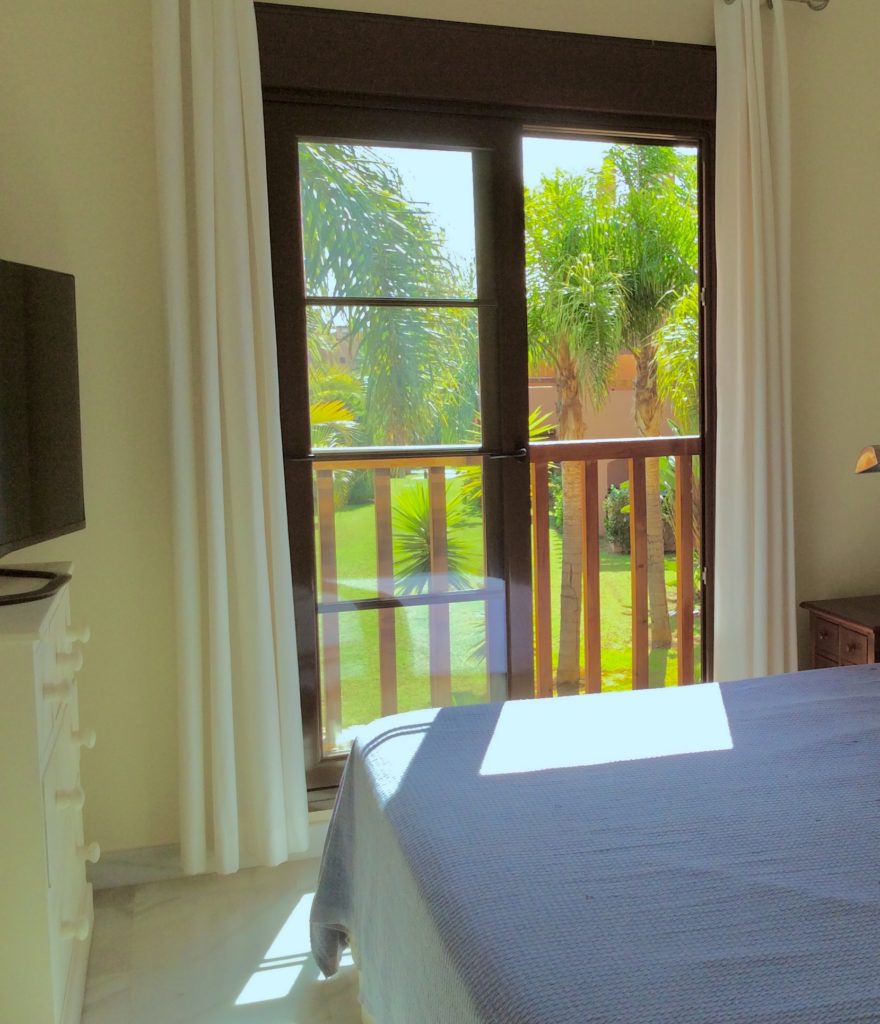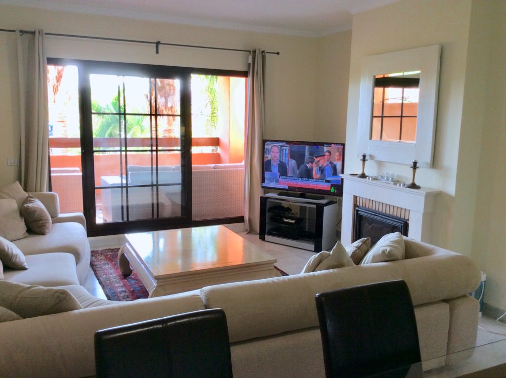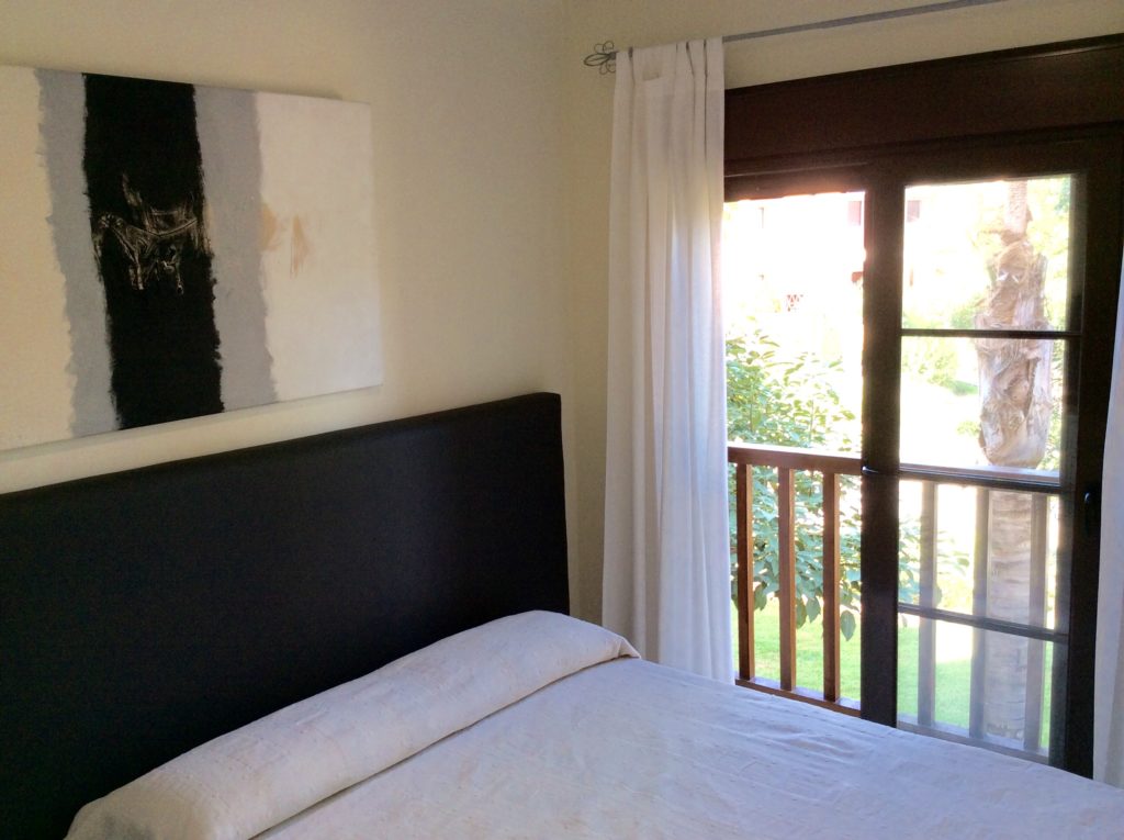 South oriented two bedroom first floor apartment in Hacienda Del Sol overlooking the gardens. Main bedroom ensuite bathroom with walk in shower and bath with shower over. Second bedroom bathroom with bath and shower over. Private parking place and storage room INCLUDED. Free WIFI provided by the urbanization. Unfurnished.