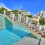 The gated complex offers a communal swimming pool and a paddle court.